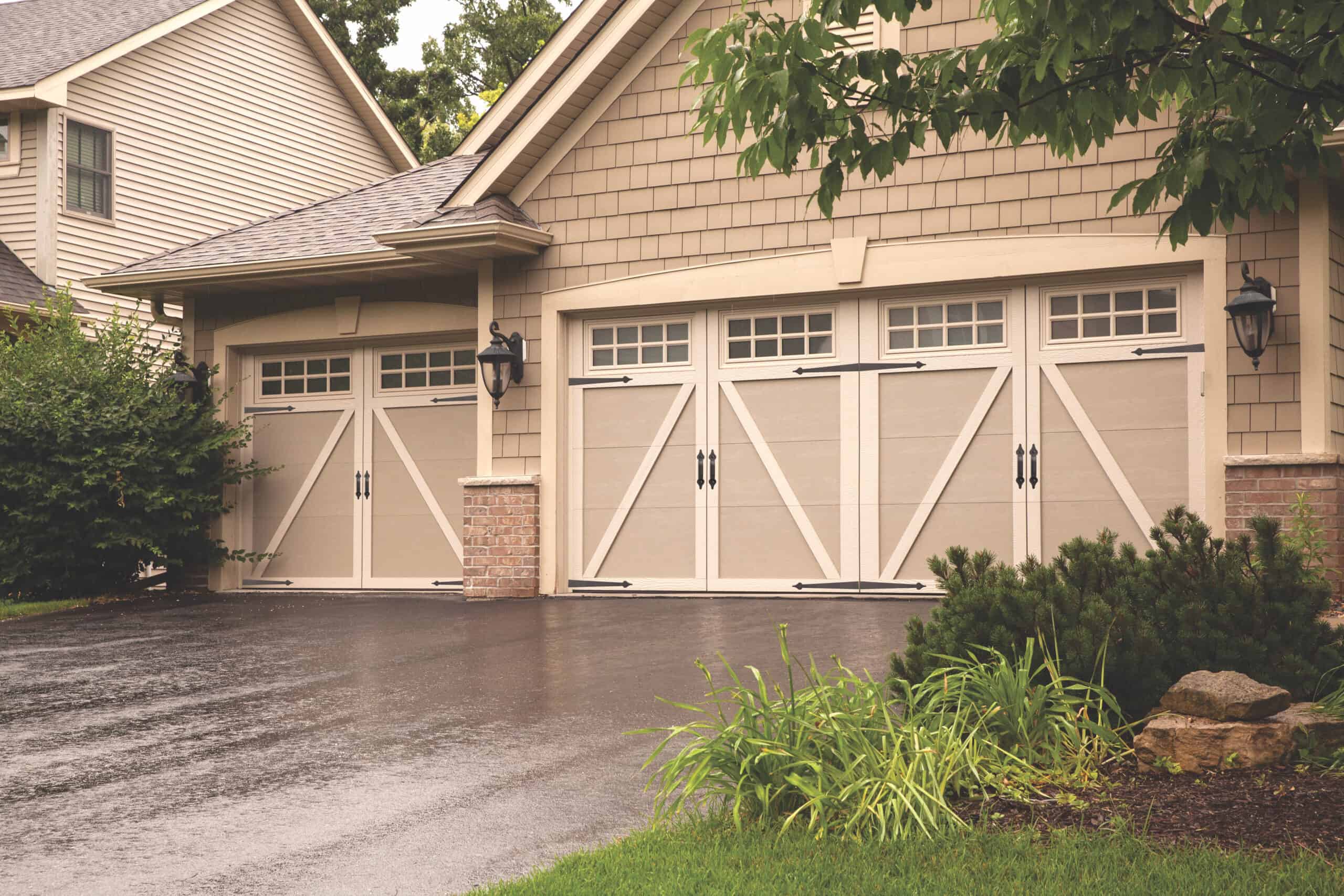 Insulated steel construction, designed to resemble the elegant wood designs of traditional carriage house doors.