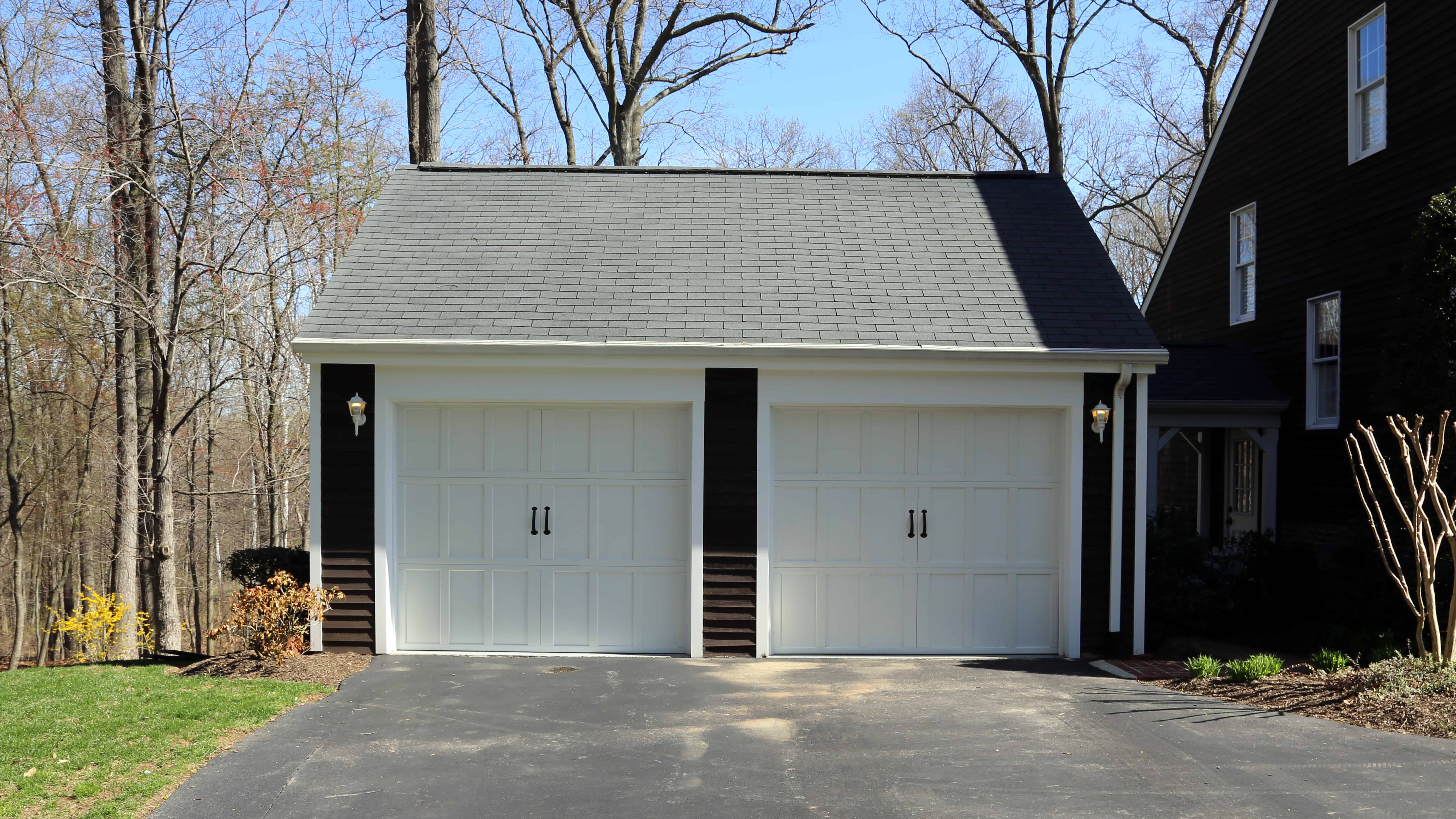 For this detached garage in Gaithersburg, MD, the homeowners chose two garage doors from the Overhead Door™ Carriage House Collection. The garage doors from this collection are made with insulated steel construction and an embossed wood grain texture that captures the look of the classic carriage house door. This door is shown in White, but is available in seven different paint and stain finishes and has the ability to be custom painted to match any home’s color palette. There are also seven different panel options. This garage door is Model 307. To further enhance the garage doors, four large bean handles were selected from the various decorative hardware options. The Carriage House Collection creates a blend of elegance and strength that are sure to enhance any home!